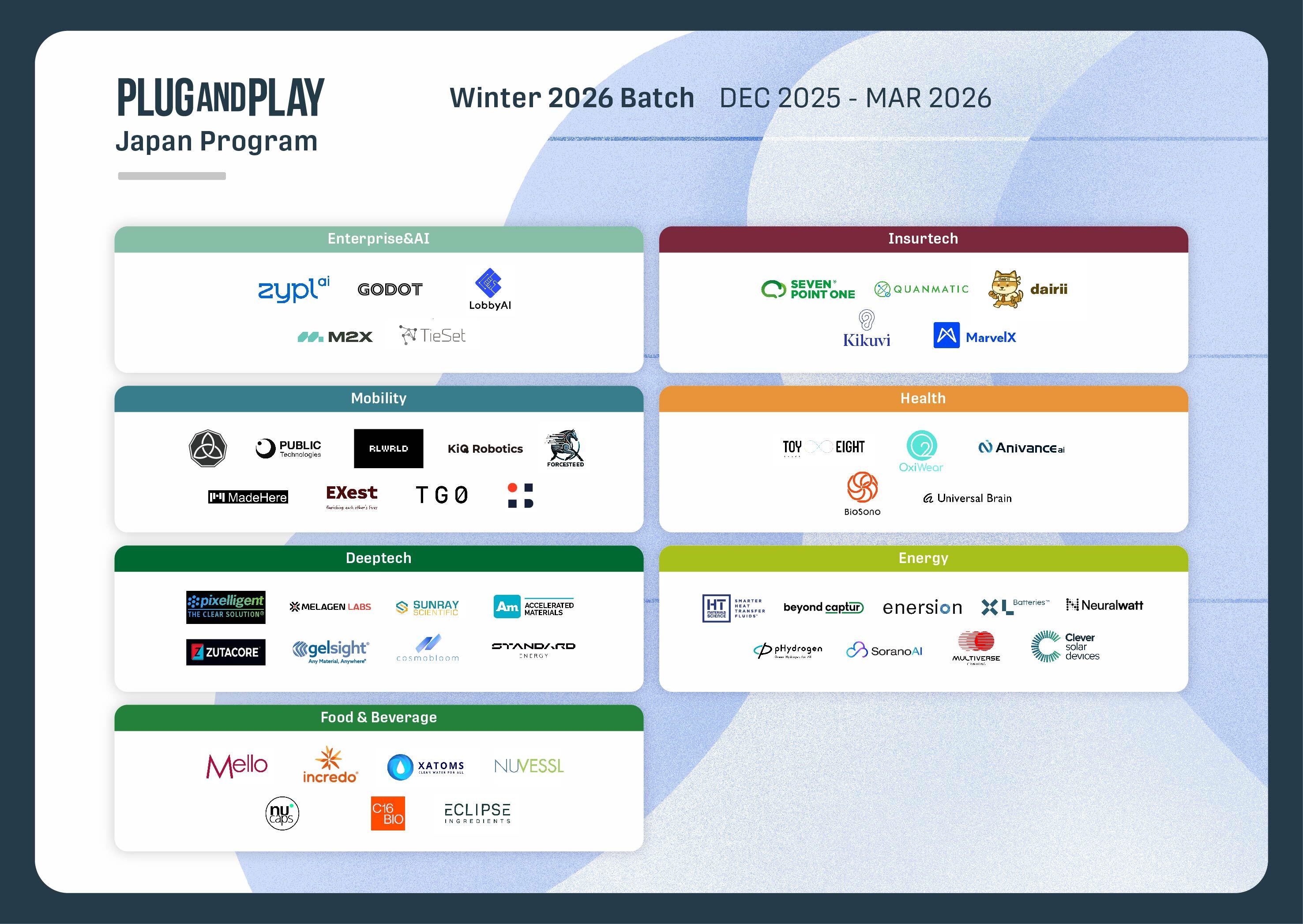 株式会社MadeHereは、Plug and Play Japan株式会社(本社:東京都渋谷区、代表取締役社長:ヴィンセント・フィリップ)が実施するアクセラレータープログラムWinter 2026 Batchに採択されたことをお知らせいたします。
